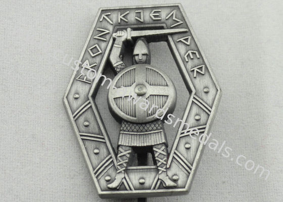 Zinc Alloy 3D Warrior Badge, Antique Silver Plating Souvenir Clip Metal Badges